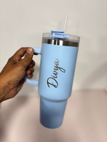 Personalized Stainless Steel Skiny Tumbler with Steel Straw